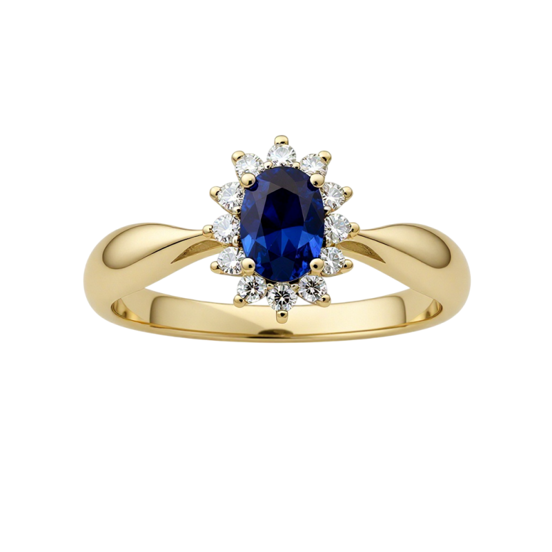 Oslnivý lesk a oválná elegance! Tento zlatý prsten Halo je ztělesněním luxusu. Centrální přírodní oválný safír je obklopen věncem zářivých diamantů, které vytvářejí oslnivou auru. Halo design zaručuje maximální třpyt a opticky zvětšuje safír. Je to jeden z nejžádanějších zásnubních prstenů pro moderní ženu. Ke šperku obdržíte certifikát pravostí kamene.