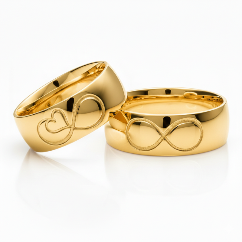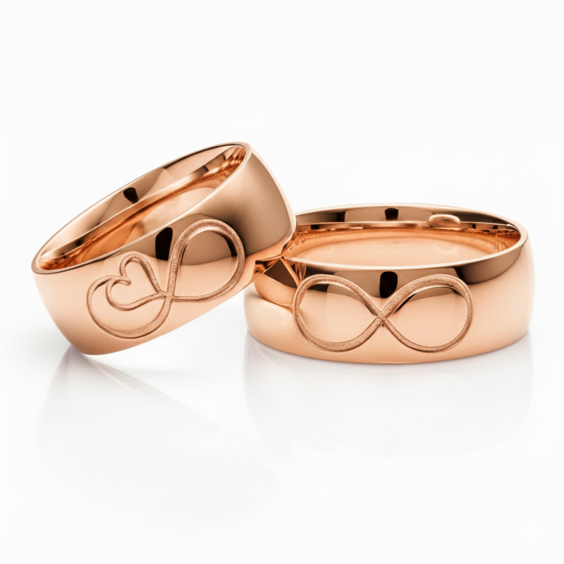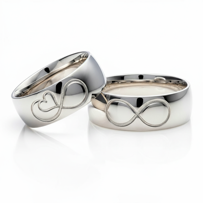 • Motiv: Výrazná vnější rytina symbolu nekonečna (infinity), která plynule obepíná obvod prstenu.