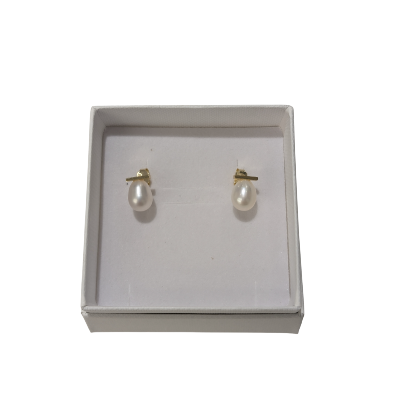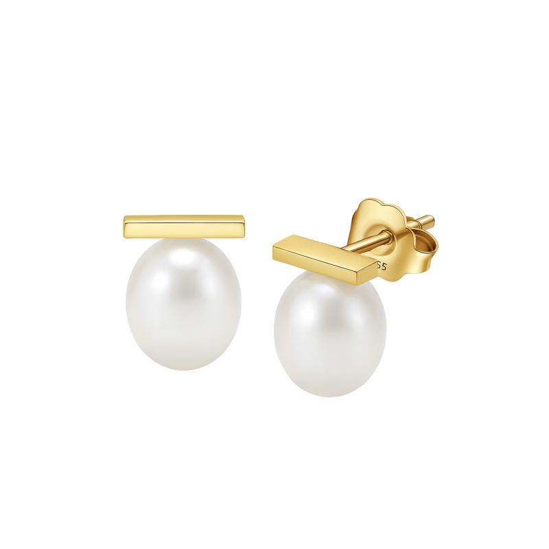 Elegantní stříbrné pozlacené náušnice s oválnou sladkovodní perlou. Jemný a nadčasový šperk vhodný pro každou příležitost.