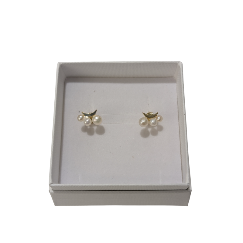 Stříbrné pozlacené náušnice s třemi perlami – půlměsíc | Avoir klenotnictví - IGY Centrum, České Budějovice