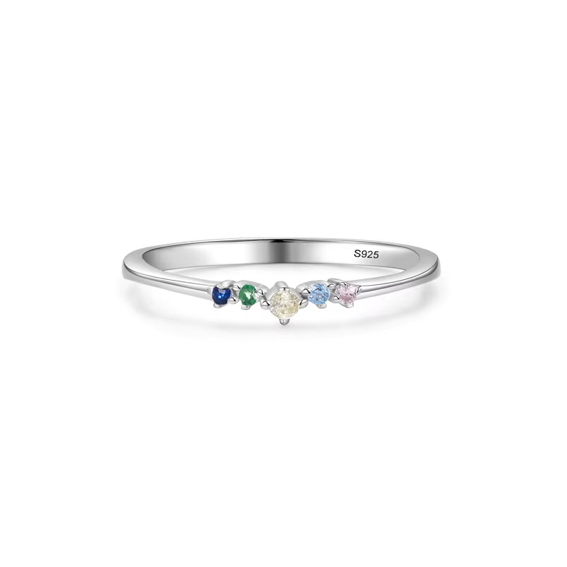 Elegantní stříbrný prsten zdobený jemnými barevnými zirkony, které dodávají šperku hravý a třpytivý vzhled. Nadčasový design vhodný pro každodenní nošení i slavnostní příležitosti.