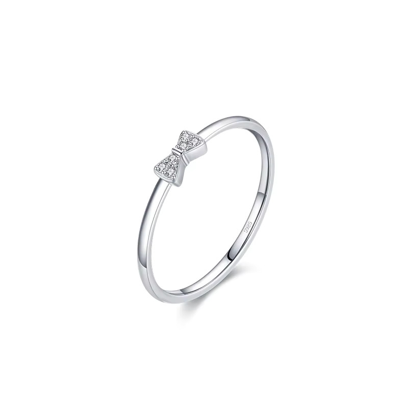 Jemný stříbrný prsten s motivem mašle, zdobený třpytivými zirkony. Romantický a hravý design, ideální pro ženy, které hledají elegantní, ale nenápadný šperk pro každodenní nošení i slavnostní příležitosti.
