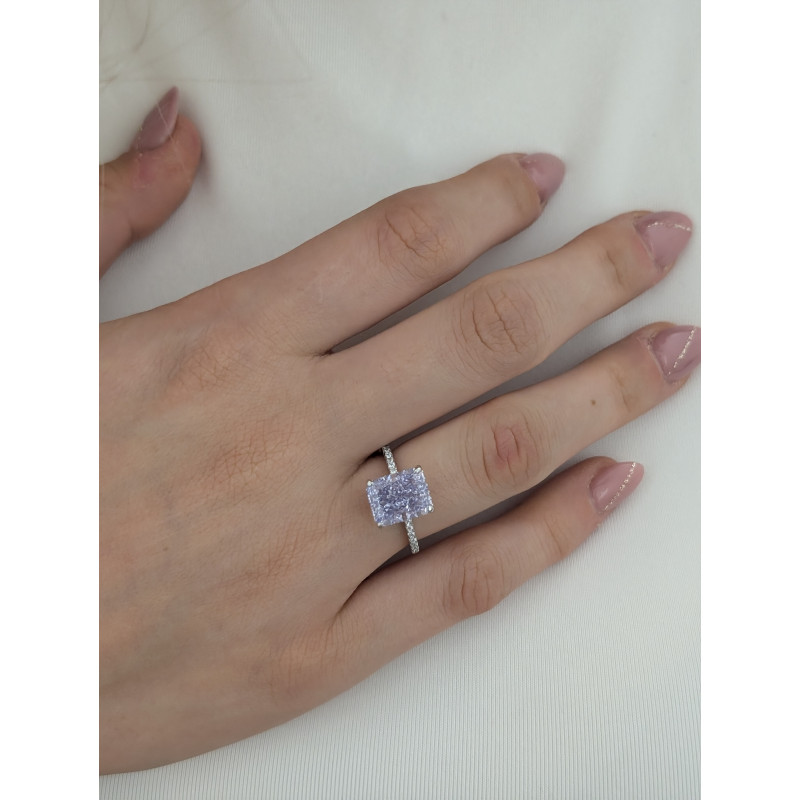 Stříbrný prsten s obdélníkovým fialovým zirkonem crushed ice 4 ct