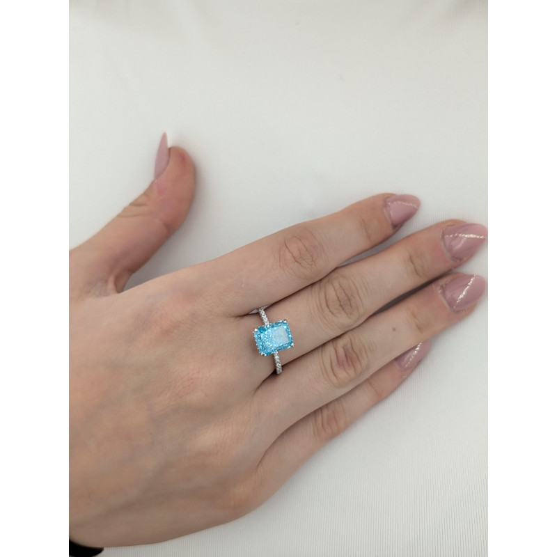 Stříbrný prsten s obdélníkovým modrým zirkonem crushed ice 4 ct | Avoir klenotnictví - IGY Centrum, České Budějovice