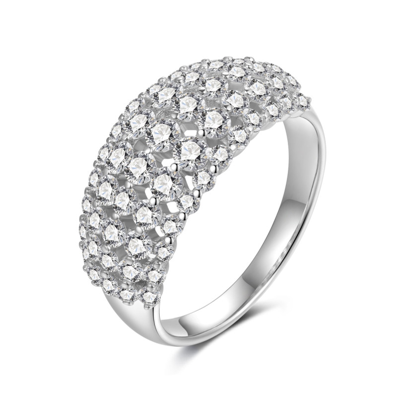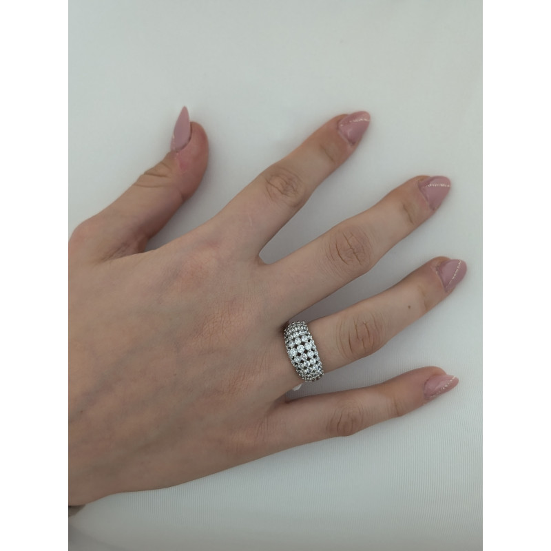 Elegantní stříbrný prsten zdobený pěti řadami třpytivých zirkonů různé velikosti, které vytvářejí působivý efekt hloubky a lesku. Moderní, výrazný a přitom nadčasový šperk, který rozzáří každý outfit.
