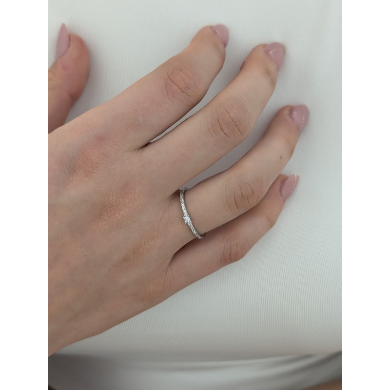 Elegantní stříbrný prsten s centrálním zirkonem čtvercového brusu doplněný jemnými kamínky po obvodu kroužku. Minimalistický a nadčasový design, který dokonale podtrhne ženskou eleganci.