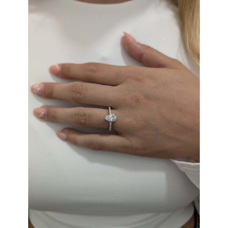 Tento stříbrný prsten s kapkovým zirkonem je dokonalým spojením elegance, ženskosti a jemného lesku. Dominantní centrální zirkon kapkového brusu působí luxusně a opticky prodlužuje prsty. Drobné čiré zirkony po stranách jsou osazeny do poloviny prstenu, čímž vytvářejí decentní třpyt, který nepůsobí přehnaně, ale velmi sofistikovaně.