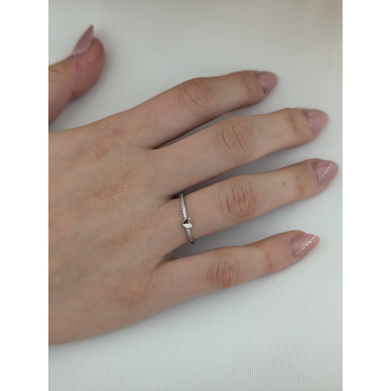 Romantický stříbrný prsten ve tvaru srdce zdobený jemnými čirými zirkony po celém kroužku. Elegantní a něžný šperk, který podtrhne ženskost a jemný styl.