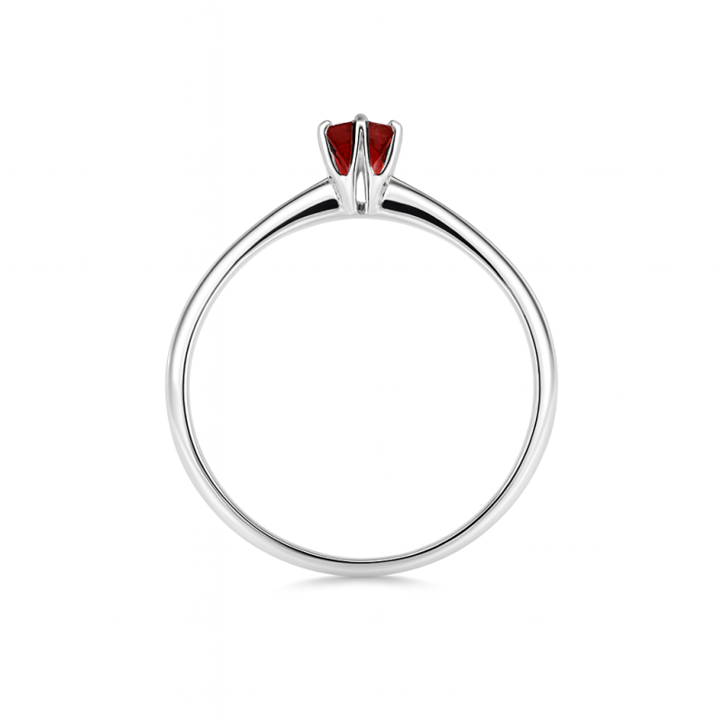 Představujeme náš elegantní a vášnivý zásnubní prsten s rubínem 0,27 ct. Tento klasický solitér je zasazen do kvalitního bílého 14k zlata (ryzost 585/1000), které nechá sytě červený rubín dokonale vyniknout. Drahokam v oblíbeném kulatém brusu je bezpečně uchycen šesti precizními krapnami, které maximálně vystavují kámen světlu a zajišťují jeho stabilitu. Rubín, symbol lásky a síly s tvrdostí 9 na Mohsově stupnici, je ideální volbou pro prsten k celoživotnímu nošení. Ke šperku obdržíte certifikát pravosti kamene. Osobní prohlídka a vyzvednutí je možné v našem klenotnictví v Českých Budějovicích.