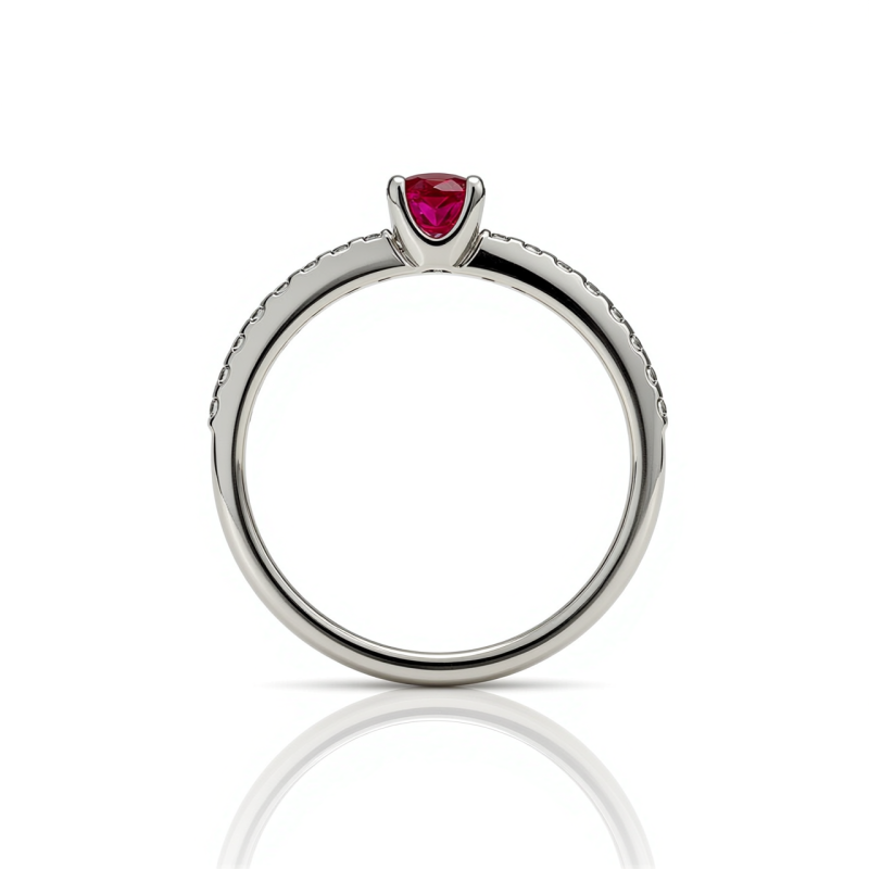 Zásnubní prsten s rubínem (0,25 ct) a bočními diamanty do poloviny těla v bílém zlatě 14ct